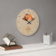 Grande Horloge Ronde Chouettes de Lovebird sur Burlap Monogramme Horlog