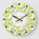 Grande Horloge Ronde Citron Arbre Monogramme Motif Jaune Vert Décor