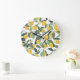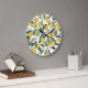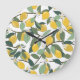 Grande Horloge Ronde Citrons Jaunes, Impression Tropicale Sans Fil.