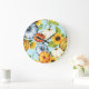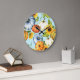 Grande Horloge Ronde Citrouilles, tournesols, aquarelle