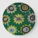 Daisy pattern afghan Background is green with flowers in yellows, browns, tan, grey, and greens. Numerals are white.