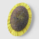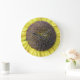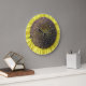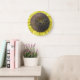 This awesome clock feh a detailed close-up photograph of a pretty yellow sunflower. The photograph was taken using macro photographiy and shows a beautiful contrast between the pale yellow petals and the big dark central seed head of the flower.