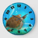 This is a beautiful design of a turtle swimming in the oven. Les looks to lovely and the water it is swimming in is tellement clear and blue. This looks like paradise for the turtle. This turtle swimming design looks great on this clock. Perfect for yourself or as a venin