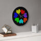 This awesomclock feh a numally created image of a circle of love hearts. Each heart is a different colour of the rainbow. The red, orange, yellow, green, blue, indigo and violet hearts are a bright fun way of expressing your love for a boyfriend, girlfriend, husband or wife. The background is black to create impact maximum.