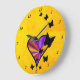 Grande Horloge Ronde Coeur arc-en-ciel et papillon