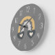 Grande Horloge Ronde Coeurs arc-en-ciel boho sur gris