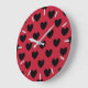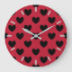 Grande Horloge Ronde Coeurs de polka noir sur rouge