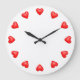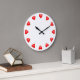 Grande Horloge Ronde Coeurs rouges sur blanc