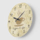 Horloges murales de cuisine aux couleurs marron et crème et image d'un café frais sur le visage de l'horloge avec les mots "café est la vie" dans cette décoration murale maison design horloge pour votre cuisine, salle de bain, ou toute chambre dans votre maison vous voulez ajouter de la nourriture et de la décoration liée à la boisson.