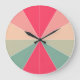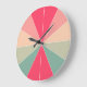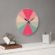 A clock face divided into 12 x 30 degree segment each divided with a white line and in a palette of 5 colors with adjoining segment at the top and bottom using the color creating y and adding emphasis to the hours and half hour, looking rather like a pie chart.