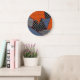 Grande Horloge Ronde Composition géométrique Abstraite : Bleu orange