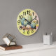 Une Belle Horloge À Mur Rond De Campagne Conçue En Jaune Avec Des Plantes De Cactus.