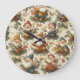 Grande Horloge Ronde Conception de gnome mignon et de fleurs