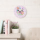 Grande Horloge Ronde Coudre le ruban de carbone Floral Monogramme rose