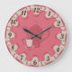 Shabby Tea Cups Wall Clock - is a graphics art design. The background of the clock is a pink/mauve plate with solid pink in the center and shabby roses around the rim. Le Center of the clock is a coffee/tea pot with a single cup and saucer. The numbers on this clock are dark brown et le reste on individual shabby teacups. Feel free to personalize the clock with a person's name if you like. This sam clock is available with a teddy bear and tea cart in the center as well.