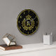 Cette horloge tape-à-l'oeil convient à un roi et une reine. Le design d'inspiration pourcentage comprend un motif de couronne et de laurier en or sur le noir avec des numéros d'horloge Art Déco élégants et de la place pour votre lettre monogramme. Cette élégante horloge murale ronde est tout simplement sophistiquée et fera de votre maison un palais. Utilisez le modèle facile pour ajouter votre lettre monogramme au centre.