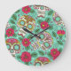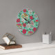Grande Horloge Ronde Crâne et fleurs mexicaines, sans soudure.