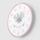 Custom s'appelle Floral Wreath Girl Wall Clock. Great personalized vend à la fille. Sweet floral wreath and custom name Mild, calming pastel colors : dusty purple, aqua et peach.