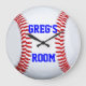 Customized Name Location Baseball Wall Clock - If you love Baseball you veut love this Baseball wall clock. Un poison pour un joueur de baseball, une équipe de baseball, une fan de baseball, ou un coach de baseball. Alors, les cloches du sport cool, c'est looks great dans les kids' rooms, game rooms, sports lounges, and man caves ! This is a photo of a baseball © TDSwhite Photographe.
