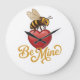 A charming honeybee standing on a bright red heart with the text “Be Mine” underneath. Playful, cute, and perfect for Valentine’s Day products or gifts.