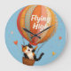 Grande Horloge Ronde Cute Chat Hot Air Balloon Whimsical Art