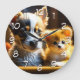 Grande Horloge Ronde Cute Chiot et Kitten