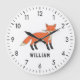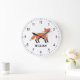 Grande Horloge Ronde Cute Fox Personnalisé Nom Personnalisé Retour À L'