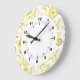 Grande Horloge Ronde Cute Fraîche Citrus Citron D'Été Doodle Jaune
