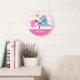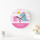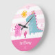 Grande Horloge Ronde Cute Kawaii Dinosaur Girl Rose Nursery Nom personn
