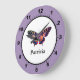 Grande Horloge Ronde Cute Modern Photography Butterfly Ajouter un nom