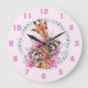 Grande Horloge Ronde Cute Pink Jungle Safari Giraffe Kids Room