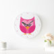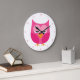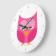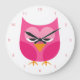 Cute, funny, rose owl cartoon custom white wall clock with pink numbers. A cute, hot pink, sleepy, owl with heavy eyelids looking somewhat unimpressed and a bit grumpy. A bright, cheerful, cool, moderne, et trendy, girly, feminine, venin pour females. Contemporain, pretty, whimsical, fun, funky, groovy, bold, amusing, vector art illustration owl design. A fashionable, chic, stylish, awesome, original et unique, beautiful, adorable, owl themed gift for her : women, teenage girls and kids / children. If you need assistance customizing your product please contact me through my store and I will be happy to help.
