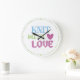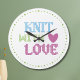 Grande Horloge Ronde Cute tricot rose blanc avec amour