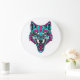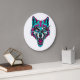 Grande Horloge Ronde Cyberpunk Neon Wolf - Synthwave Robotic Animal