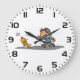 Grande Horloge Ronde Dessin amusant garçon et chien Jouer aller cherche