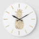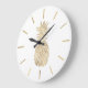 Grande Horloge Ronde dessin d'ananas à feuille d'or faux
