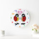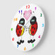GRANDE HORLOGE RONDE DEUX COCCINELLES MIGNONNES ET UN CŒUR ROSE POUR LE