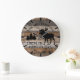 Ce design personnalisé rustique, unique et unique en son genre présente un arrière - plan en faux bois en détresse avec des pins, un orignal, et les mots "THE WILLIAMSONS LIVING ON MOUNTAIN TIME EST. 20XX" en typographie noire. Personnalisez cette horloge en ajoutant vos propres informations personnelles. Quel grand cadeau pour le ménage. Cliquez sur "personnaliser ce modèle" pour modifier les noms et les polices afin de créer un design unique et unique. Quel bel accessoire pour votre salon, chambre ou chambre familiale. Si vous avez besoin d'aide sur la personnalisation, envoyez-moi un courriel à ybnormalone @gmail.com. Merci de vous être arrêté par www.zazzle.com/WhisperingPines. #zazzlemade ©Karen Hall
