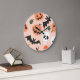 Grande Horloge Ronde Doodles d'Halloween, citrouilles, chauves-souris m