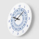 Cette horloge murale comporte une double conception circulaire assez bleue de coeur qui donne à cette horloge un pays appel chic. La conception est répétée deux fois, avec le cercle intime étant plus petit. Mais des conceptions sont encadrées en assortissant les points bleus. Les nombres bleus sur l'extérieur rendent l'horloge facile à lire.