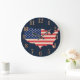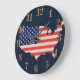 Horloge du drapeau des États-Unis appuyée en bleu profond.