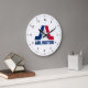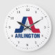 Clock with the flag of Arlington, Texas. A white flag with a blue and red letter A and a silver star in the center