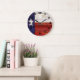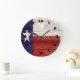 Grande Horloge Ronde Drapeau texan sur texture de bois rustique