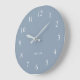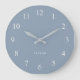 This elegant, moderne, clock feh white numerals on a trendy, dusty blue background with a spot to add your name.