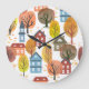 Grande Horloge Ronde Elégance d'automne : Aquarelle Ville et arbres