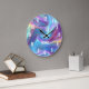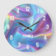 Jolie photo de Pretty shimmer glam holographique Iridescente avec des chiffres blancs en gras. Vous pouvez ajouter votre propre photo ou texte personnalisé pour créer votre propre horloge murale. Ce sera parfait comme cadeau personnalisé.