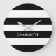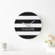 Grande Horloge Ronde Elégant luxe personnalisé noir et blanc rayé
