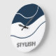 Grande Horloge Ronde Elégant & moderne bleu & blanc
