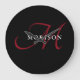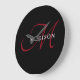 Grande Horloge Ronde Élégant Monogramme moderne noir rouge