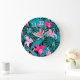 Grande Horloge Ronde Elegant Tropical Hibiscus Flowers and Leaves |